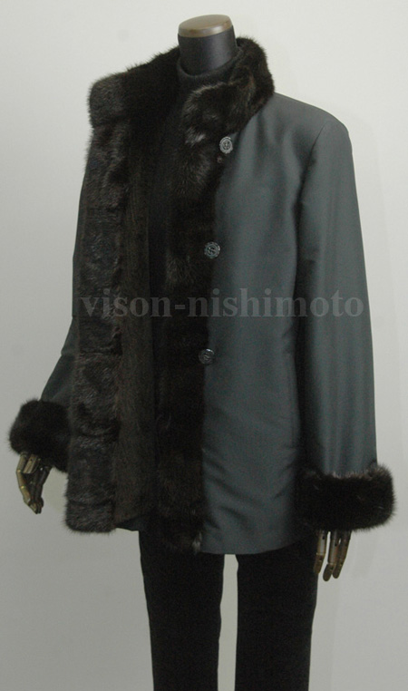 衿とカフスは長毛、ライナーは刈毛加工で軽く仕立てています。