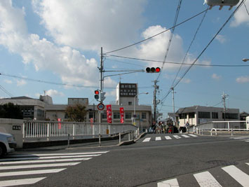 踏切の前迄行き右手に曲がります。この道をまっすぐ行きます。一方通行で車が後ろから来るので注意して。 |