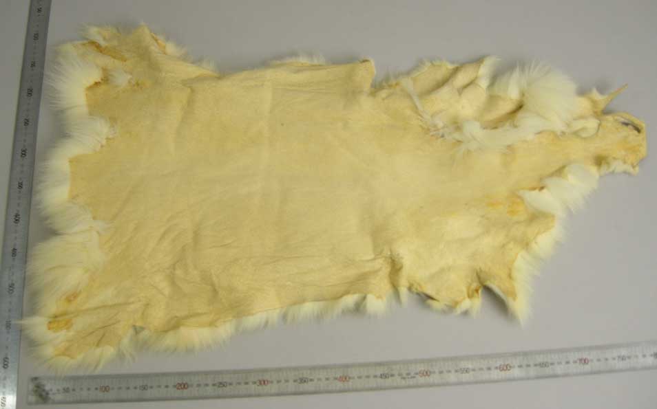 ※新古品の放出素材です。完成品をお求めの方、毛皮のお手入れをご存じない方はご遠慮下さい。ドラムケア(熱風ドラムで虫干手入)済(毛玉・毛だんごが残っている事があります。毛皮専用ブラシなどでお手入れいただく等毛皮の知識の有る方に)