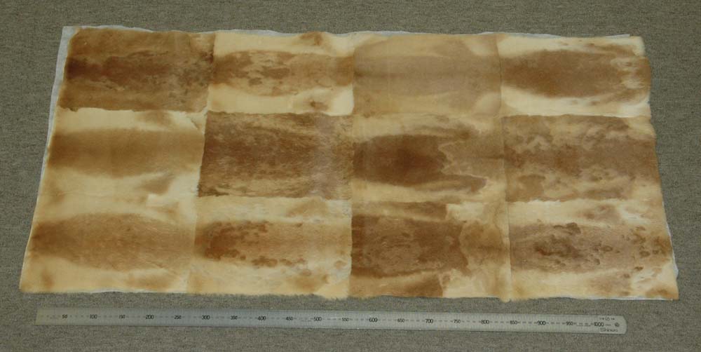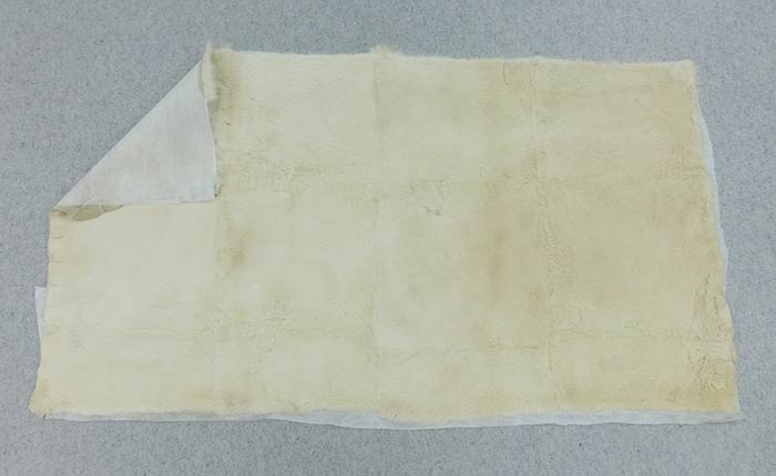 (大きさは商品に寄り若干異なります)刈毛の大きなファープレートです。クリーニング済。染めムラ、刈りムラがあります。染めの為に仕入れたものです。上から染める事を前提としており、もともと多少の黄ばみがございます。